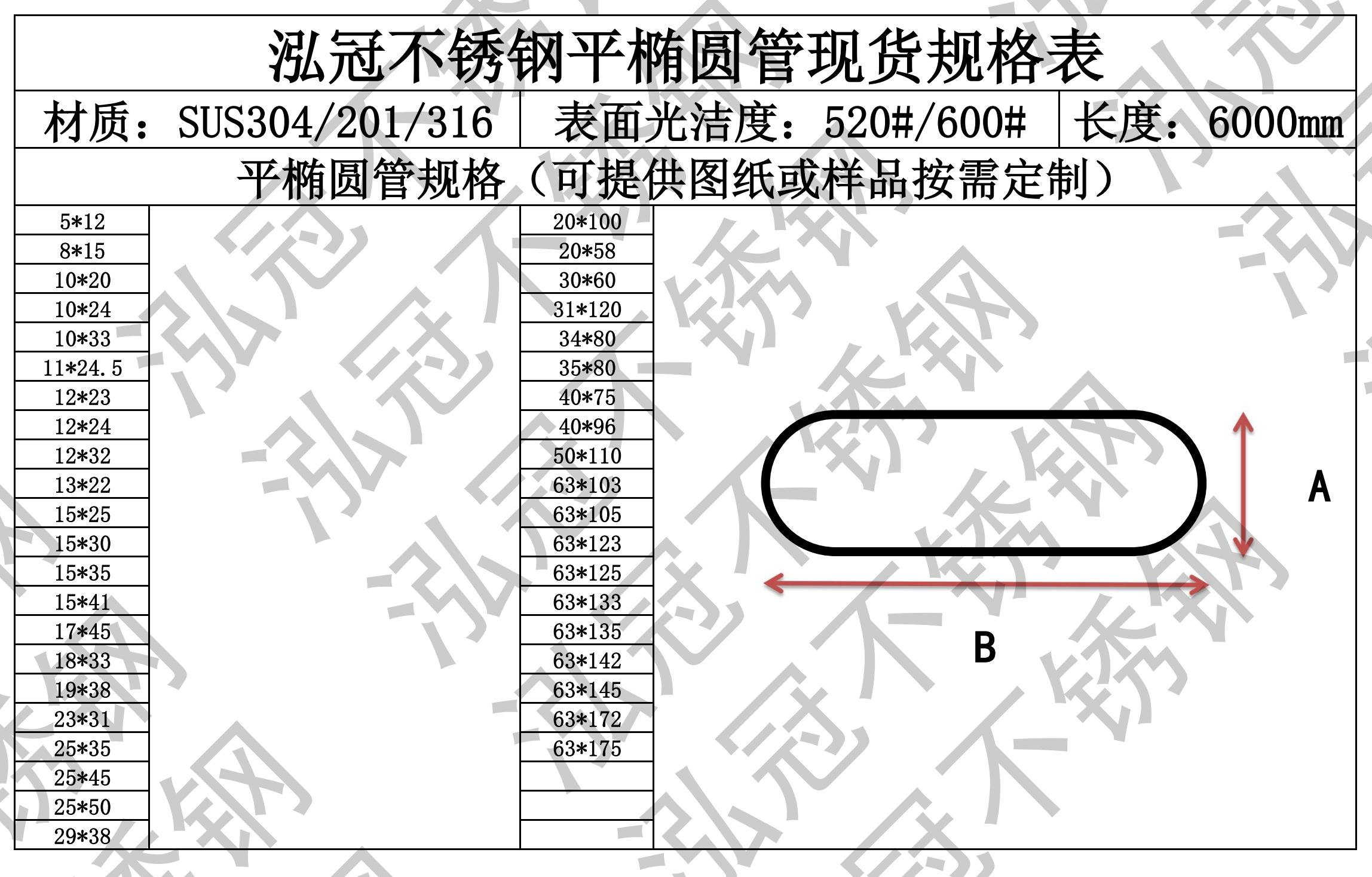 泓冠不銹鋼平橢管現(xiàn)貨規(guī)格表